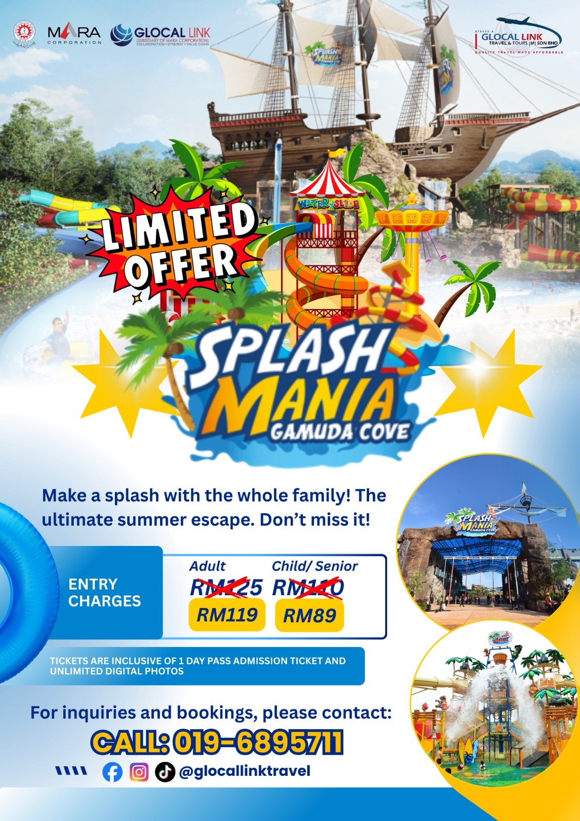 Dive into endless water fun at SplashMania Gamuda Cove with discounted entry passes including unlimited digital photo memories.