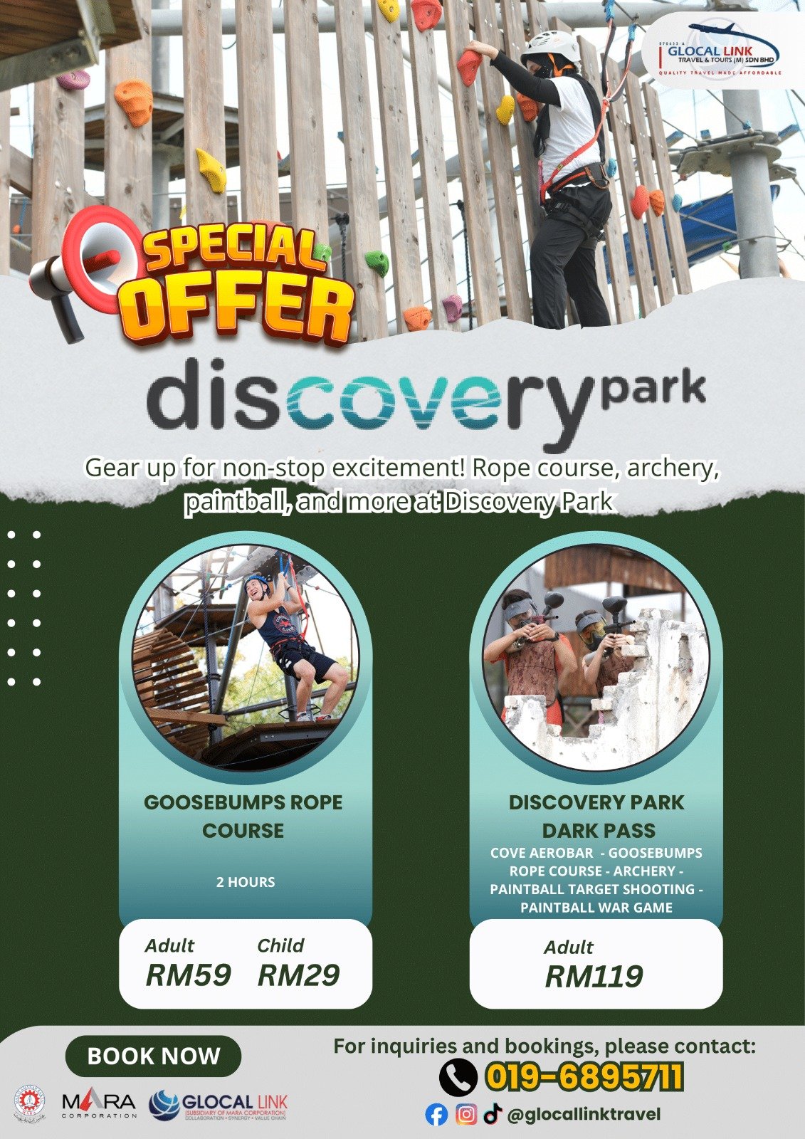 Gear up for non-stop excitement at Discovery Park featuring challenging rope courses, archery, and high-energy paintball war games.